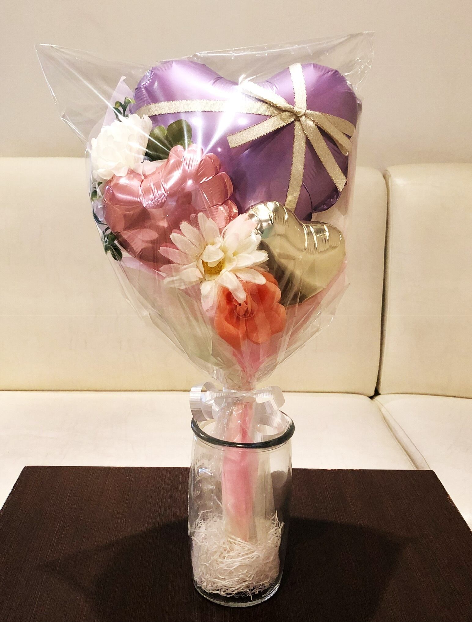 ☆ハートバルーンにリボン加工した女の子に喜ばれる可愛いブーケです。