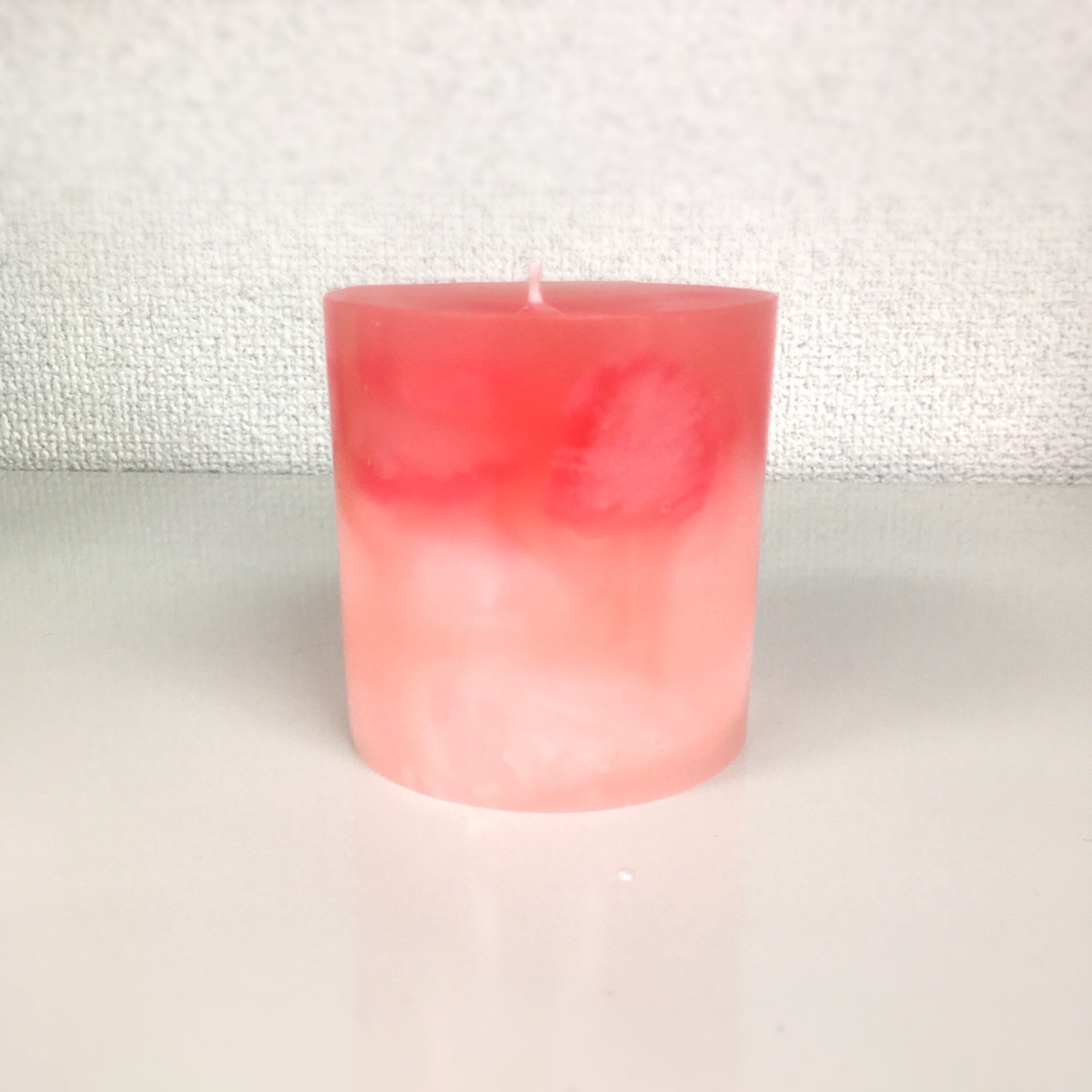 コーラルピンクとレッドのチャンクキャンドルなっております。
