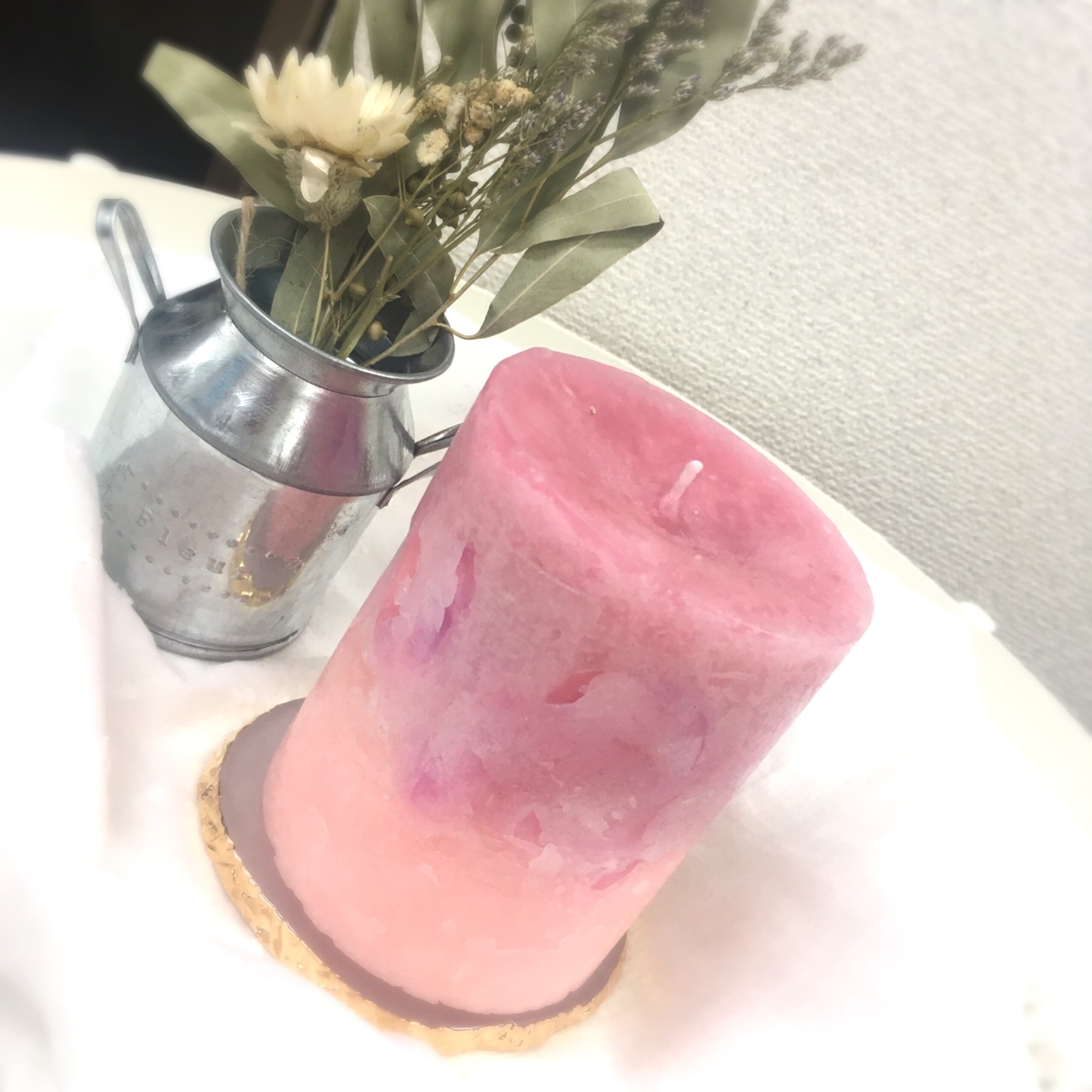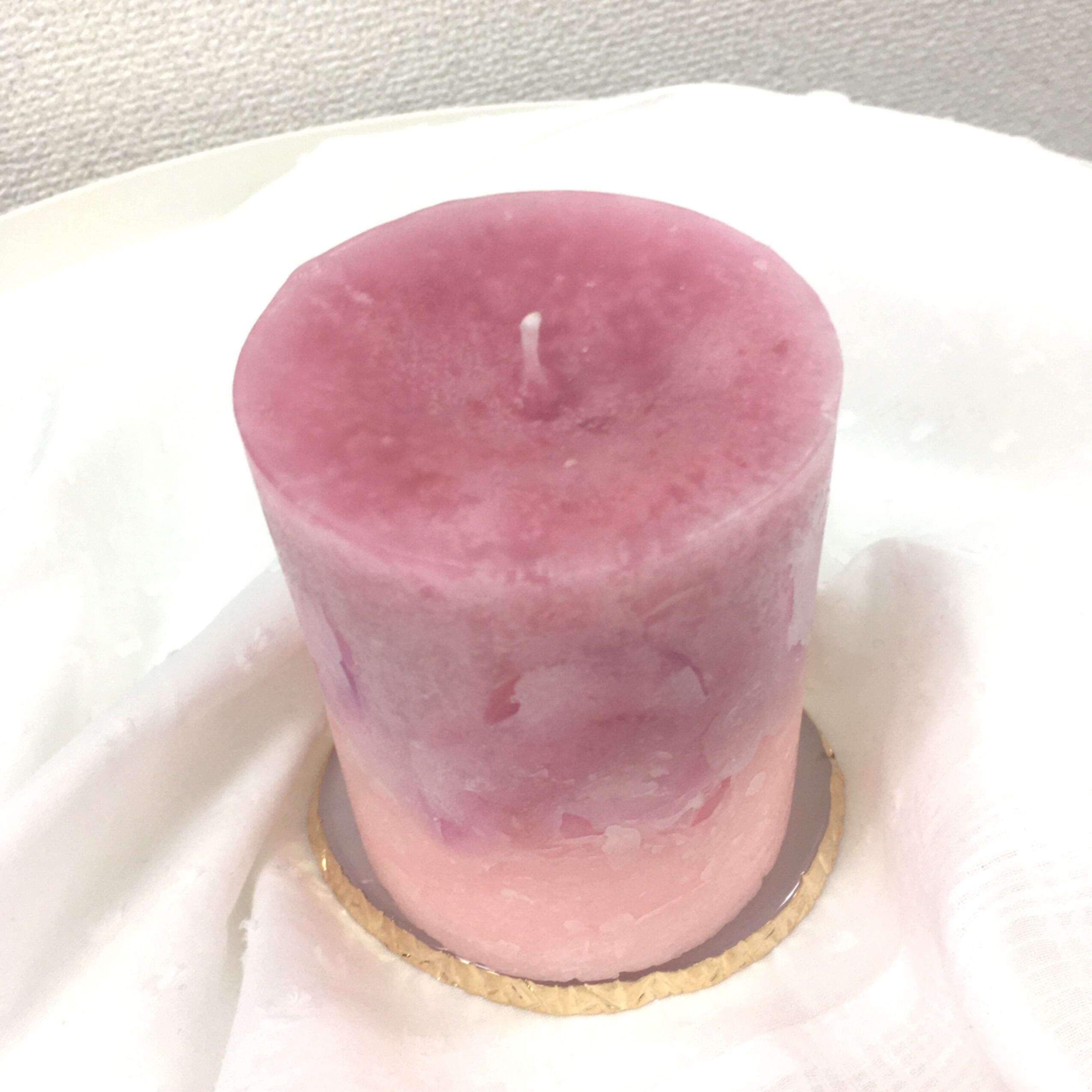 ピンクをホイップにして中にパープル、ピンクのチャンクを入れてあるキャンドルとなっております。