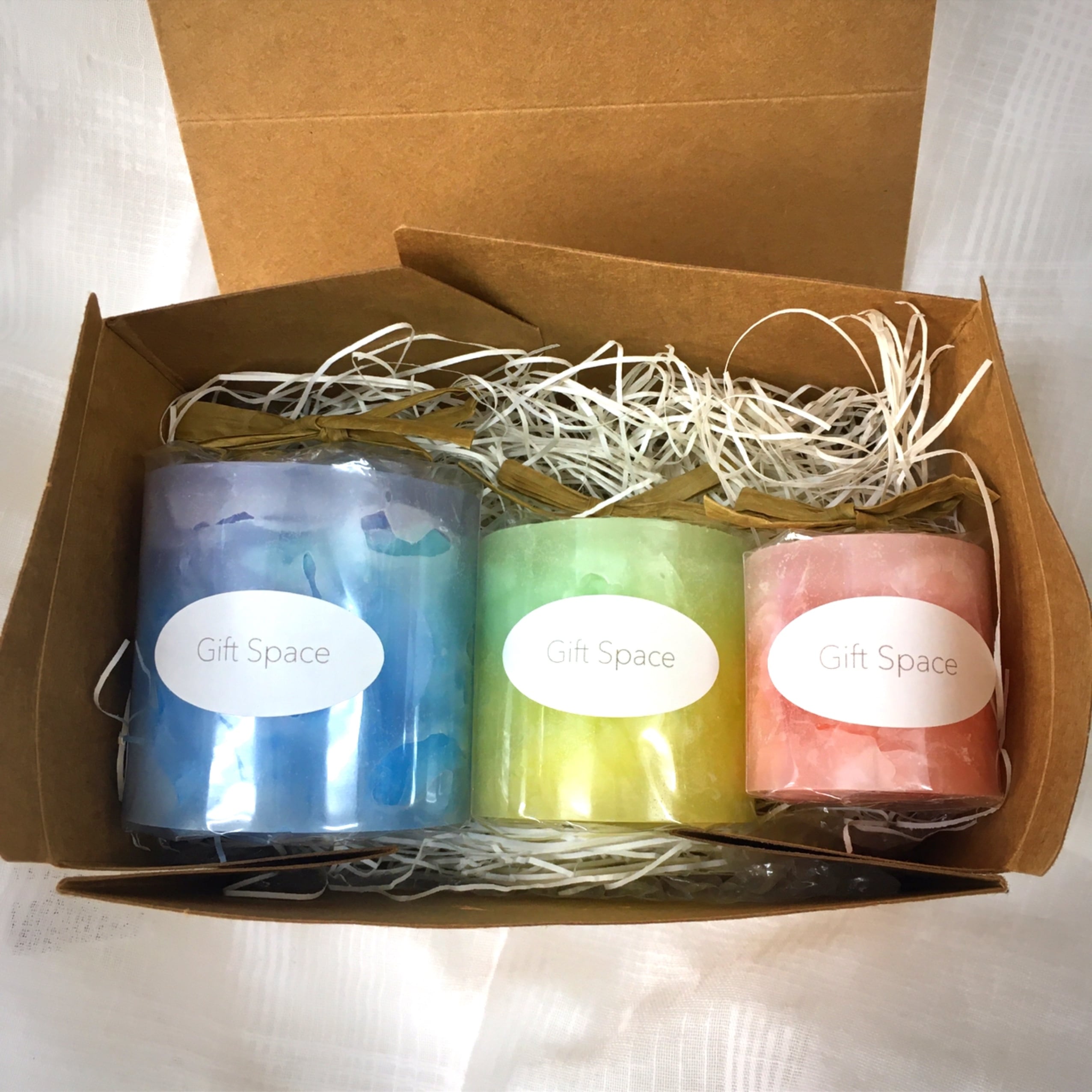 ギフト用に3点セットキャンドルご用意致しました。手のひらサイズのミニキャンドルです。