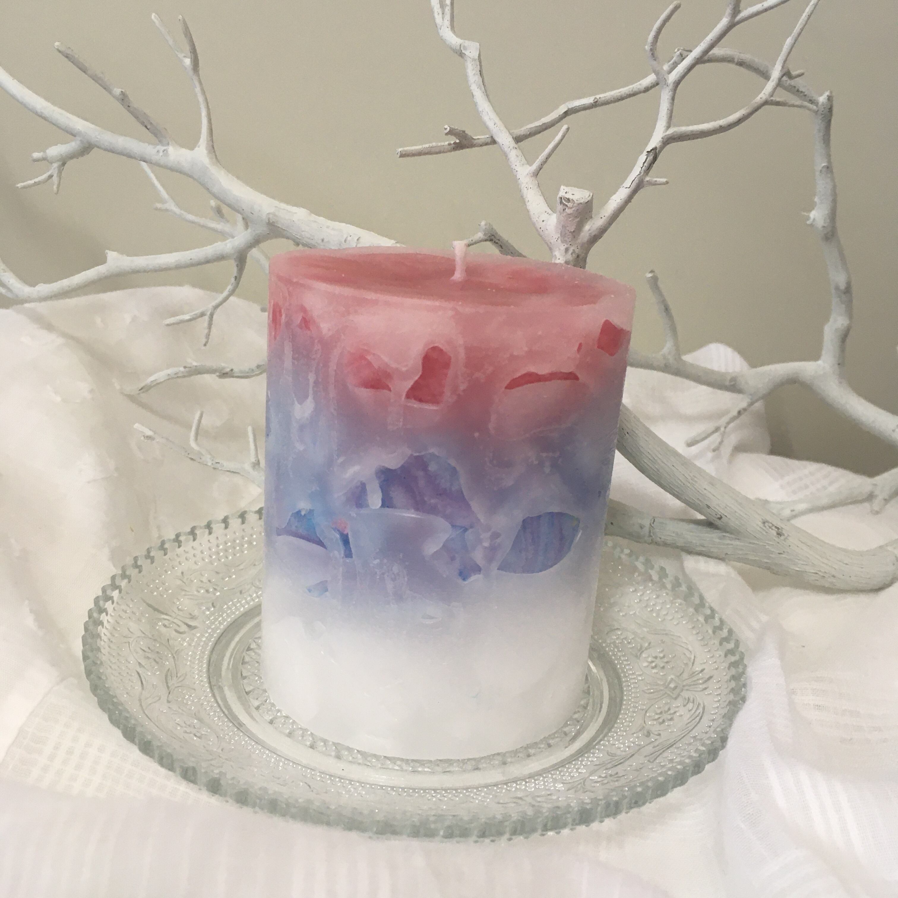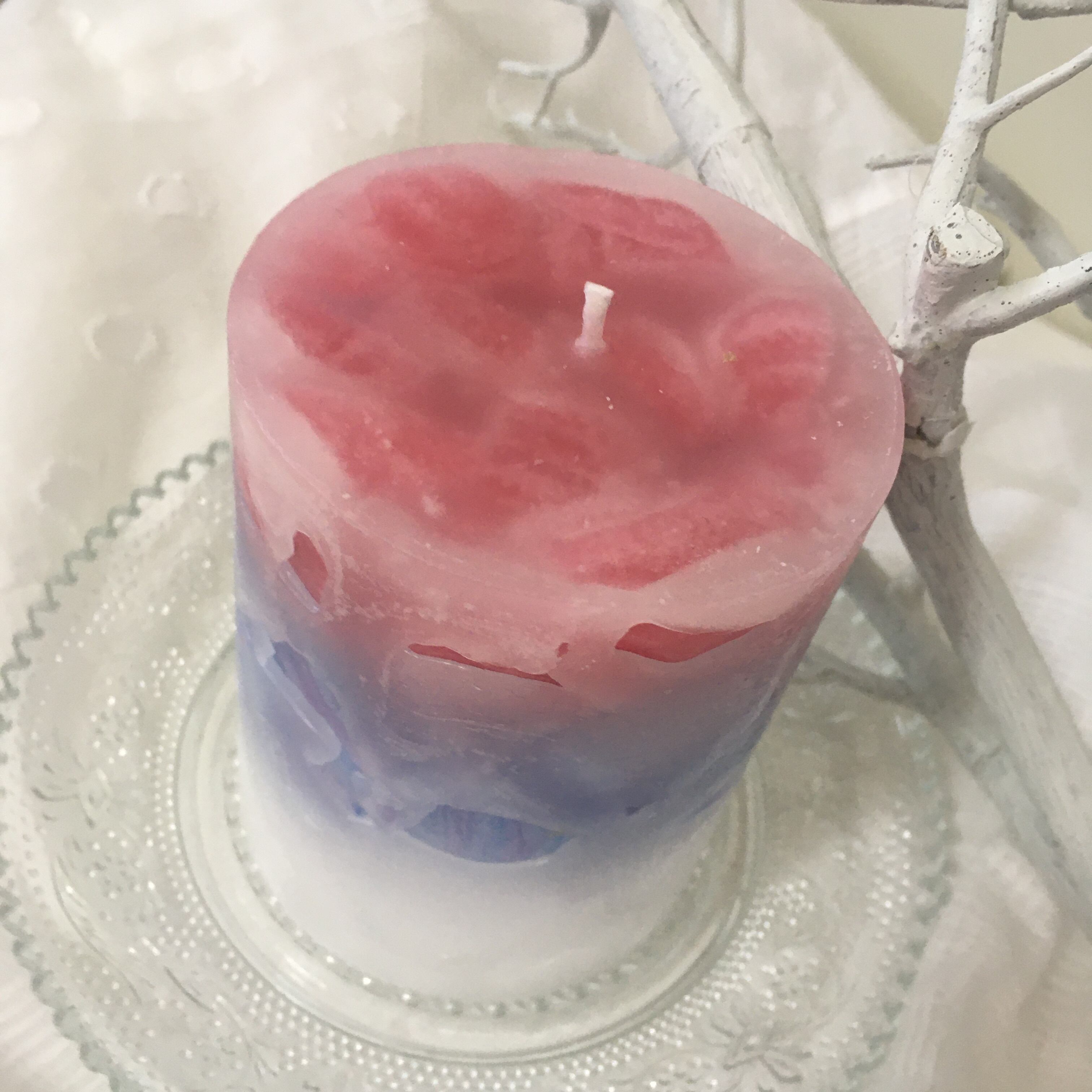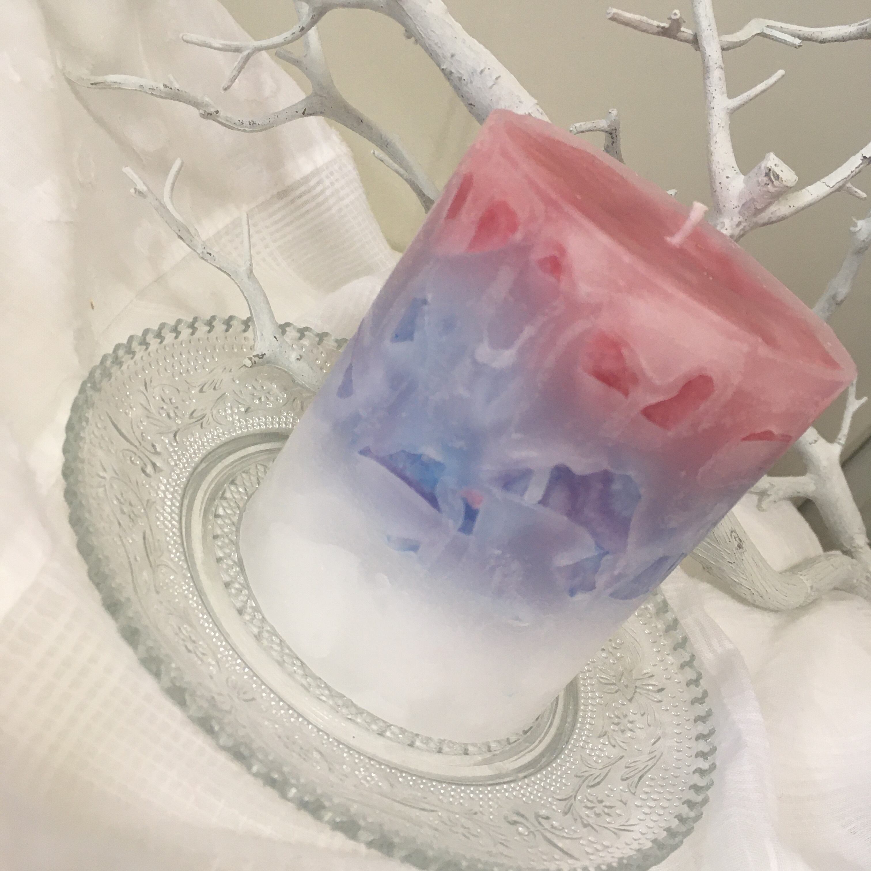 くすみピンク、パープル、ホワイトのチャンクキャンドルなっております。
