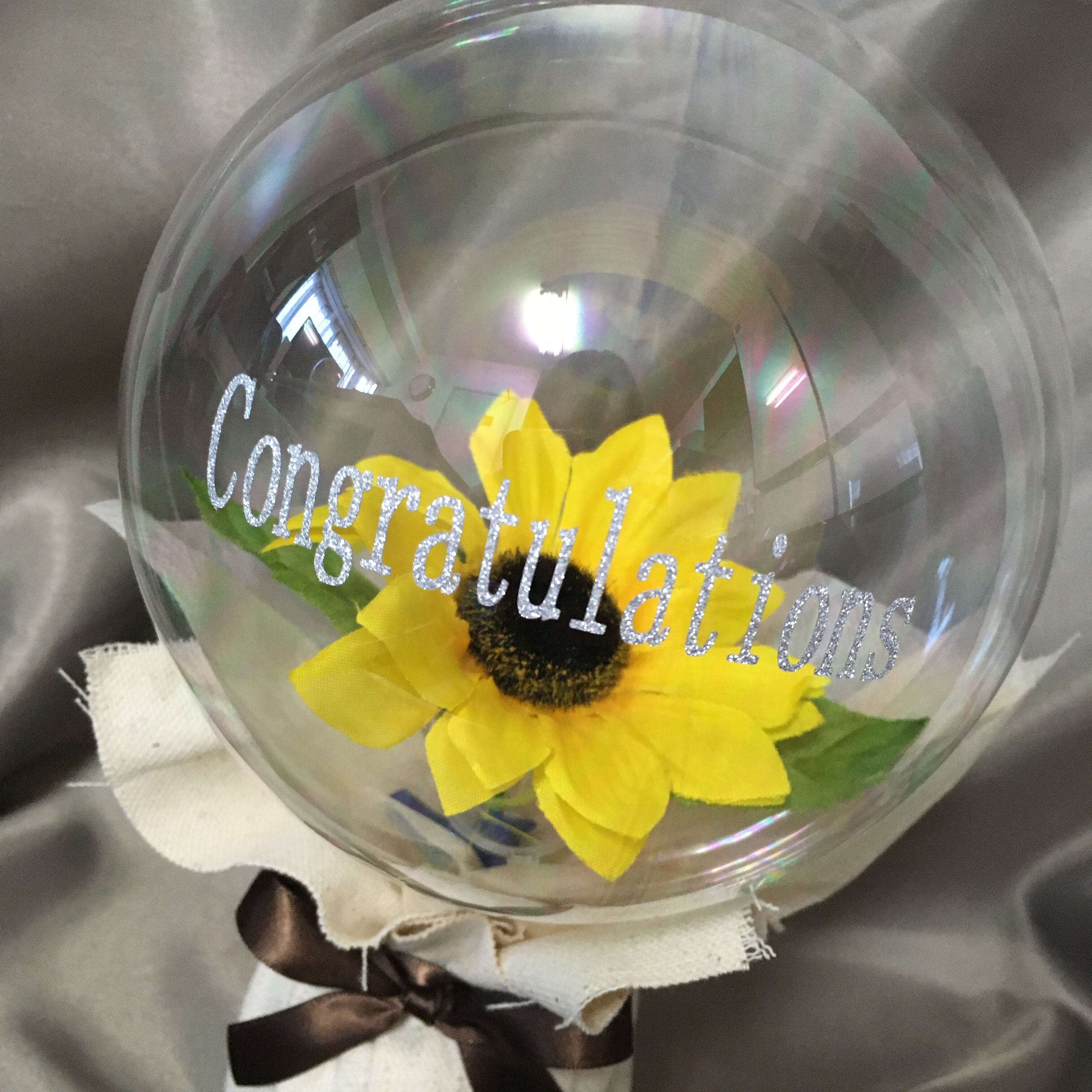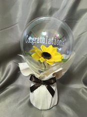 ひまわりの造花を透明のバルーンに入れたバルーンフラワーミニ卓上ポットです。